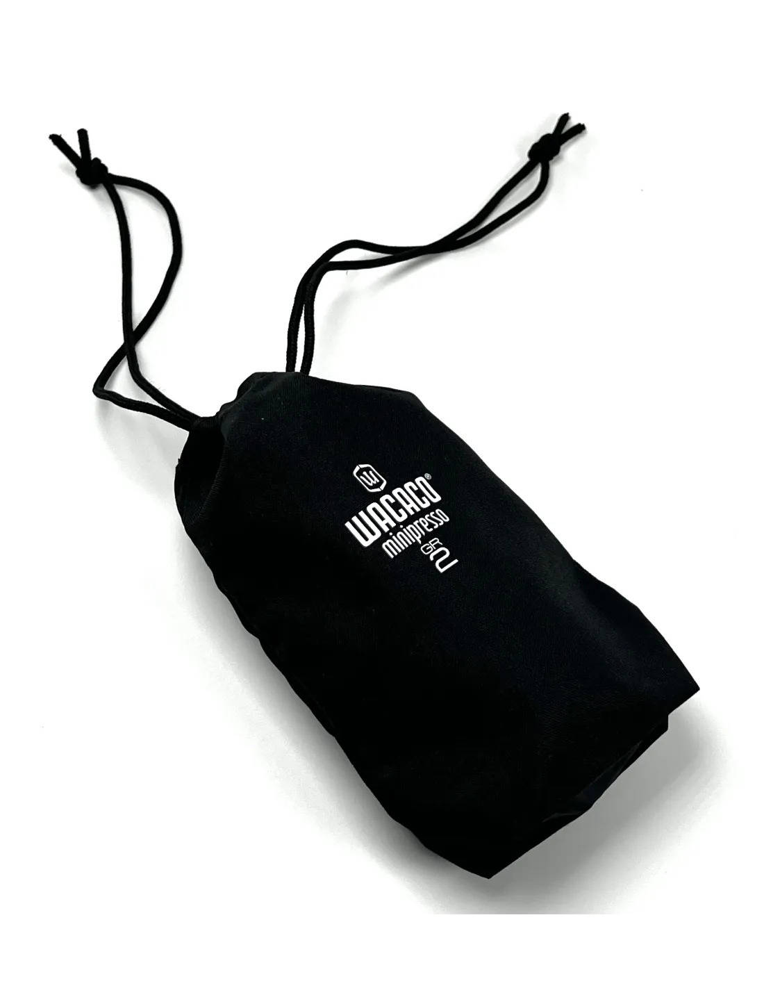 Paket uključuje: Wacaco MiniPresso GR2, ugrađenu šalicu za espresso, lopaticu, lijevak, pladanj za kapanje, četku, platnenu torbicu i upute na više jezika.