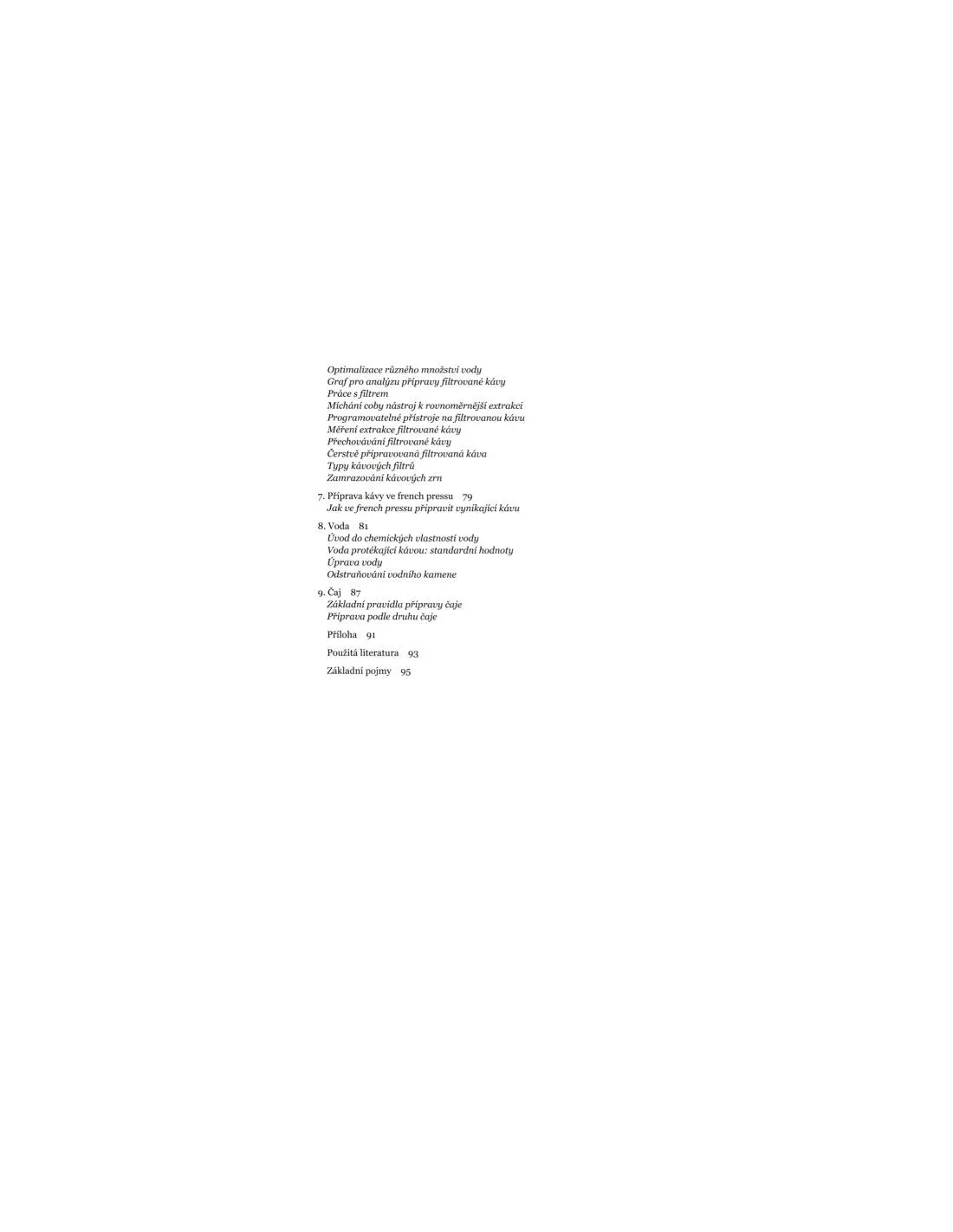 Na 100 stranica Scott opisuje praktične, točne i više desetljeća iskustvom provjerene informacije o pripremi kave u komercijalnim i kućnim okruženjima . Autor se bavi espressom, filtriranom kavom, ali i problematikom mljevenja i vode . Ova knjiga je obavezna za svakoga tko se ozbiljno bavi kuhanjem kave.