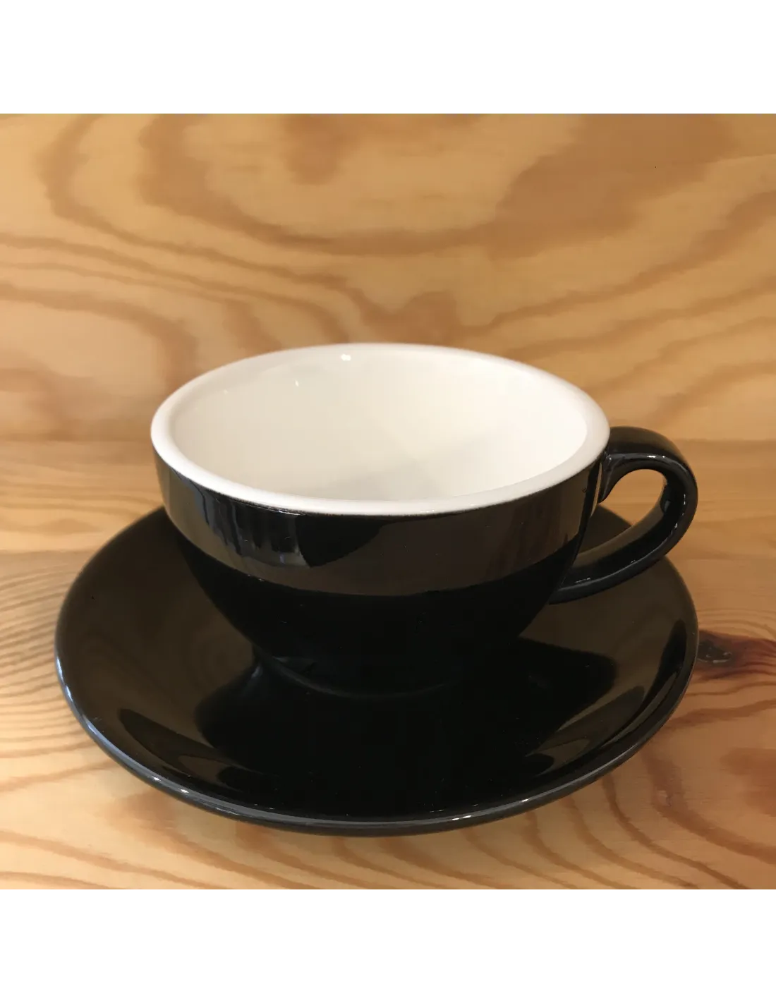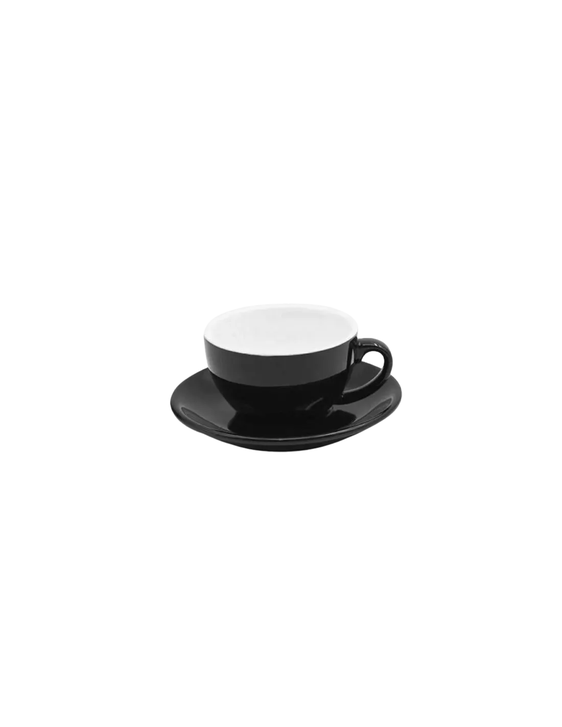 Porculanska šalica za cappuccino zapremine 200 ml . Uključuje i tanjurić . Boja: crna .