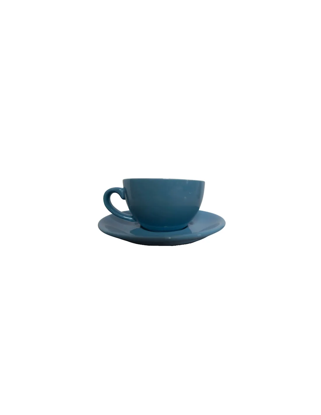 Porculanska šalica za cappuccino zapremine 200 ml . Uključuje i tanjurić . Boja: nebesko plava .