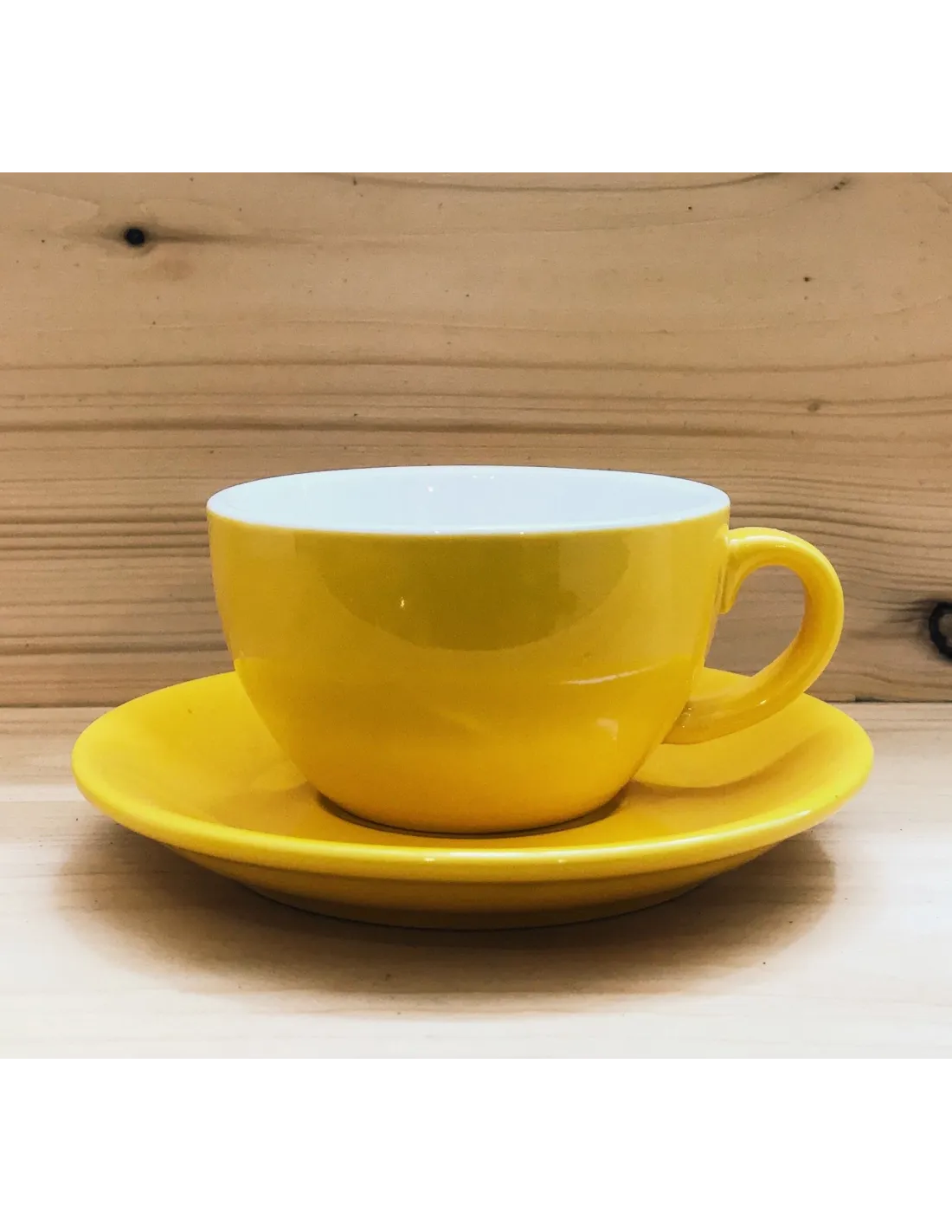 Porculanska šalica za cappuccino zapremine 200 ml . Uključuje i tanjurić . Boja: žuta .