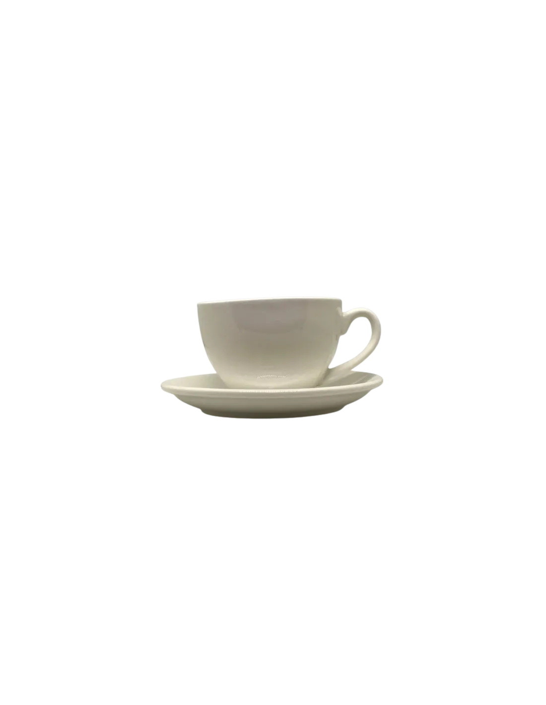 Porculanska šalica za cappuccino zapremine 200 ml . Uključuje i tanjurić . Boja: bijela .