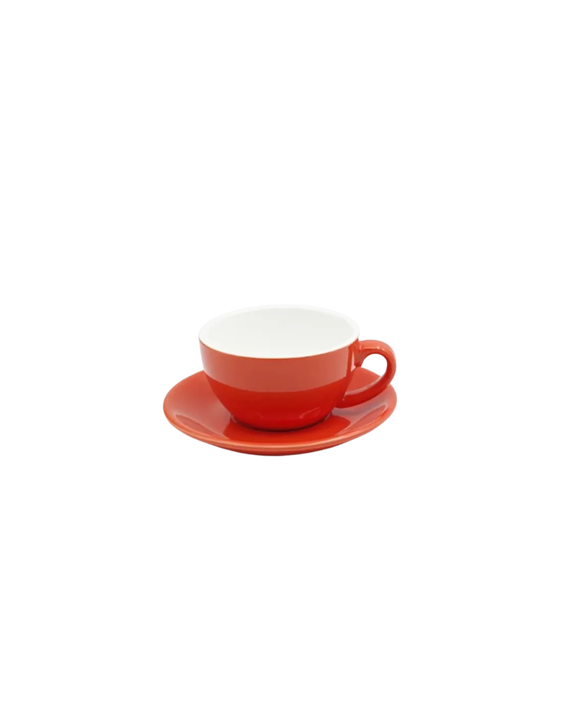 Porculanska šalica za cappuccino zapremine 200 ml . Uključuje i tanjurić . Boja: narančasta .