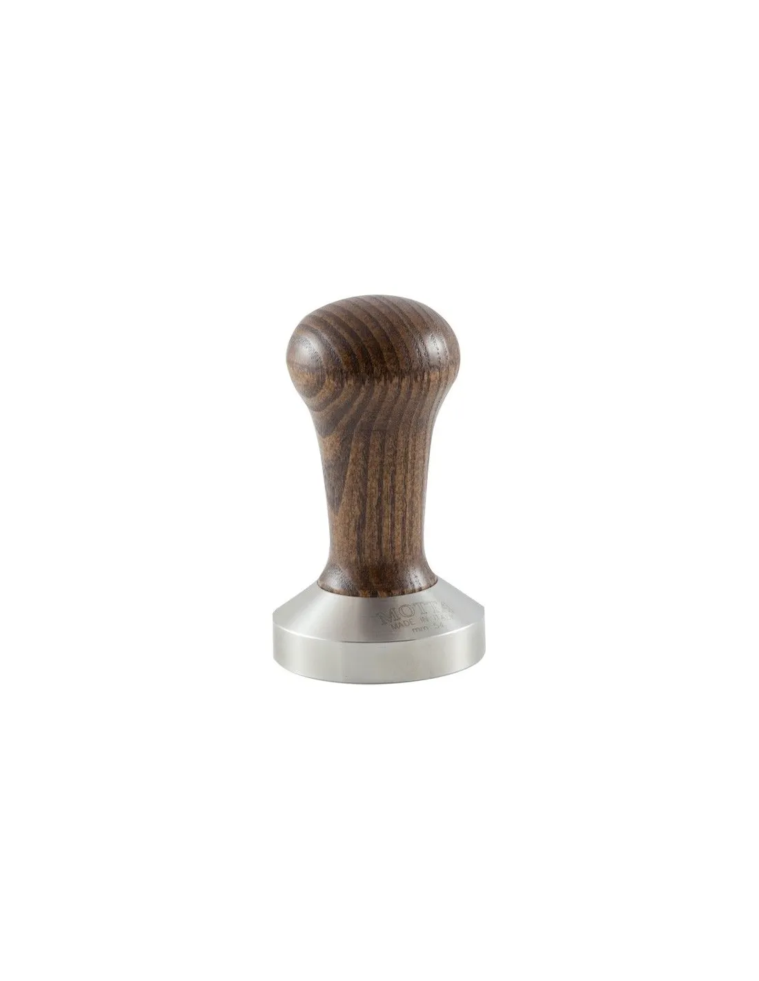 Profesionalni Motta tamper ima metalnu bazu i ergonomsku drvenu ručku, a težina mu je 350g.