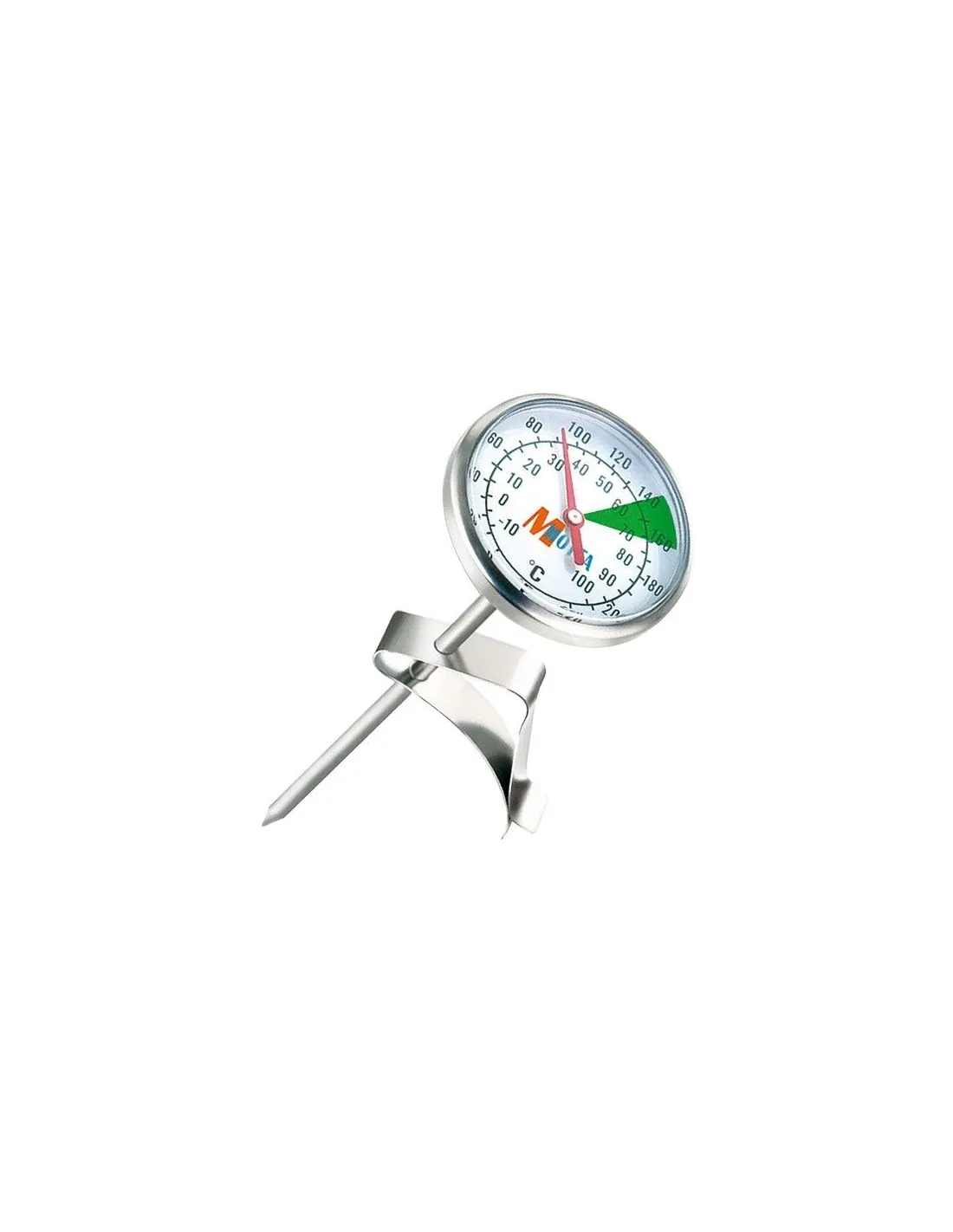 Profesionalni analogni termometar za mlijeko talijanske metalurške tvrtke Motta neophodan je alat za sve bariste. Zahvaljujući praktičnoj kopči, vrlo dobro stoji na vašoj odjeći.