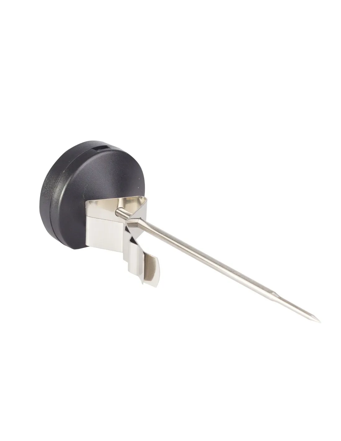 Termometar mjeri dugom iglom. Zahvaljujući kopči od nehrđajućeg čelika, toplomjer možete jednostavno pričvrstiti na svoj latiere ili drugi čajnik, a pomicanjem možete podešavati duljinu igle. Ova se ručka također može ukloniti.