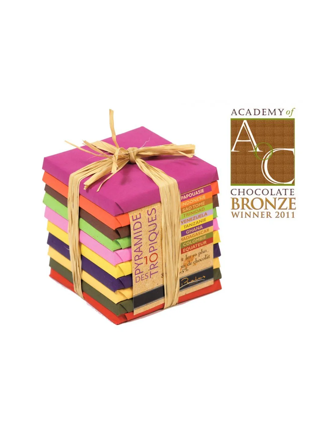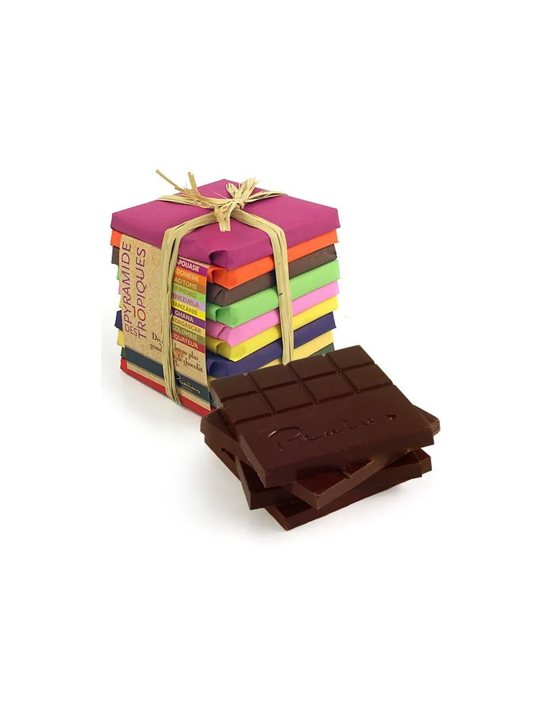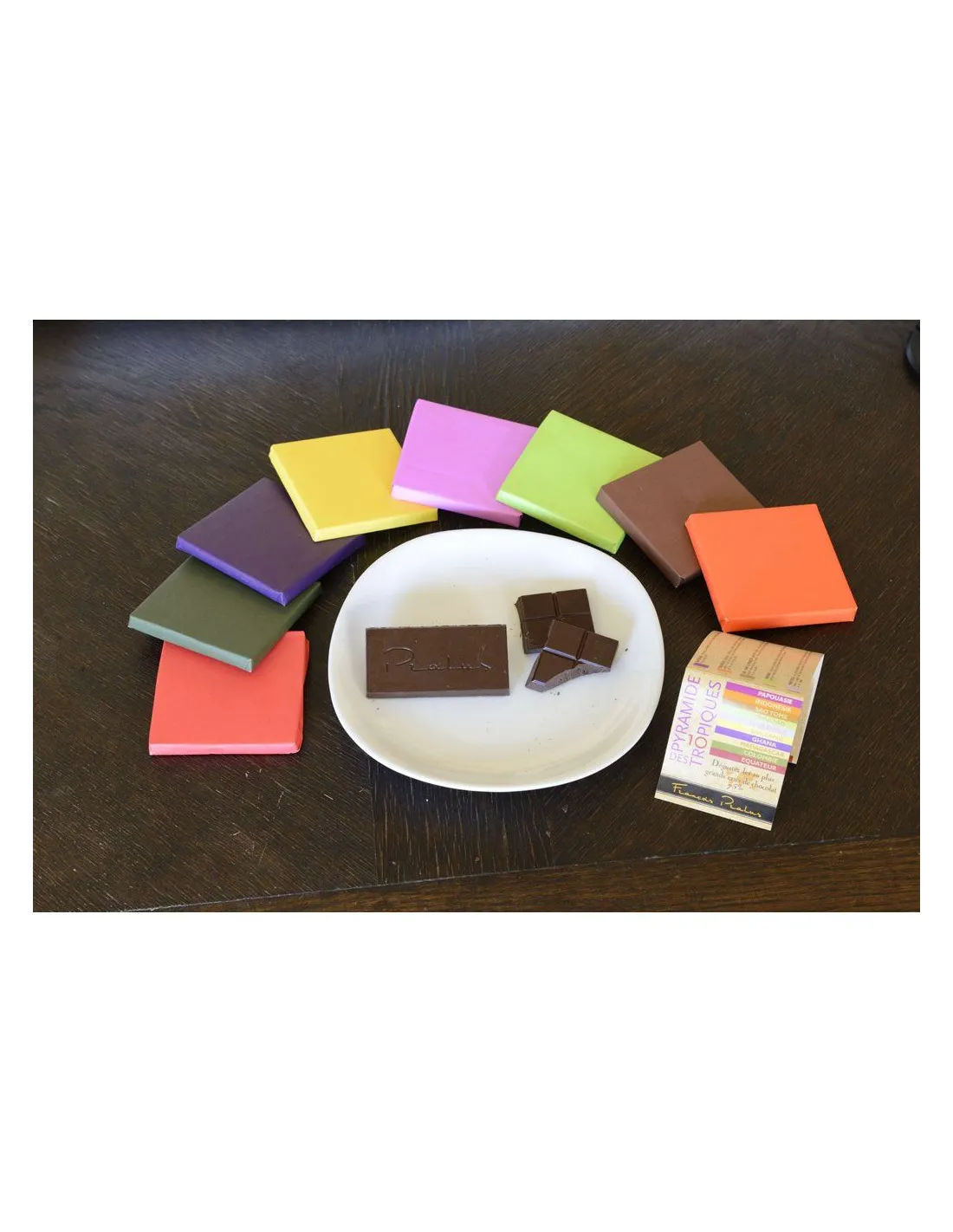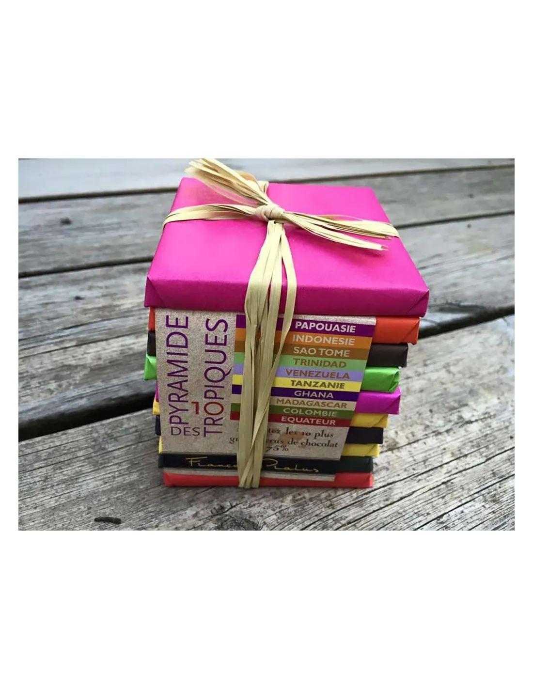 Krenite na čokoladno putovanje oko svijeta . Set za degustaciju sadrži 10 vrsta čokolada single-origin 75% Francois Pralus. U ovom setu za kušanje uživat ćete u razlikama između pojedinih vrsta zrna kakaovca (Criollo, Trinitario i Forastero) i usporediti okuse čokolada iz različitih regija svijeta.